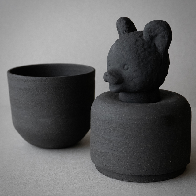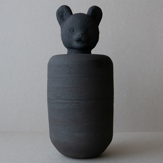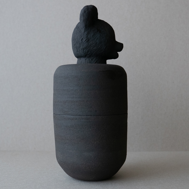 He’s a little bear, he’s a lot of fun, and now he’s Canopic Contemporary Vessel no.2. A mystery object. Yes he is. I like to imagine this impractical, forever object will cause some head scratching if exhumed by whatever alien race has made its home here a few hundred years from now. Black eternal Stoneware 27cm